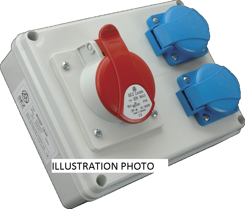 - Skriňa ROSP 3231 IP54 zásuvková 1x32A/5P/400V+2x250V vývodka TMV21 poist. 2x10A 10010526.00